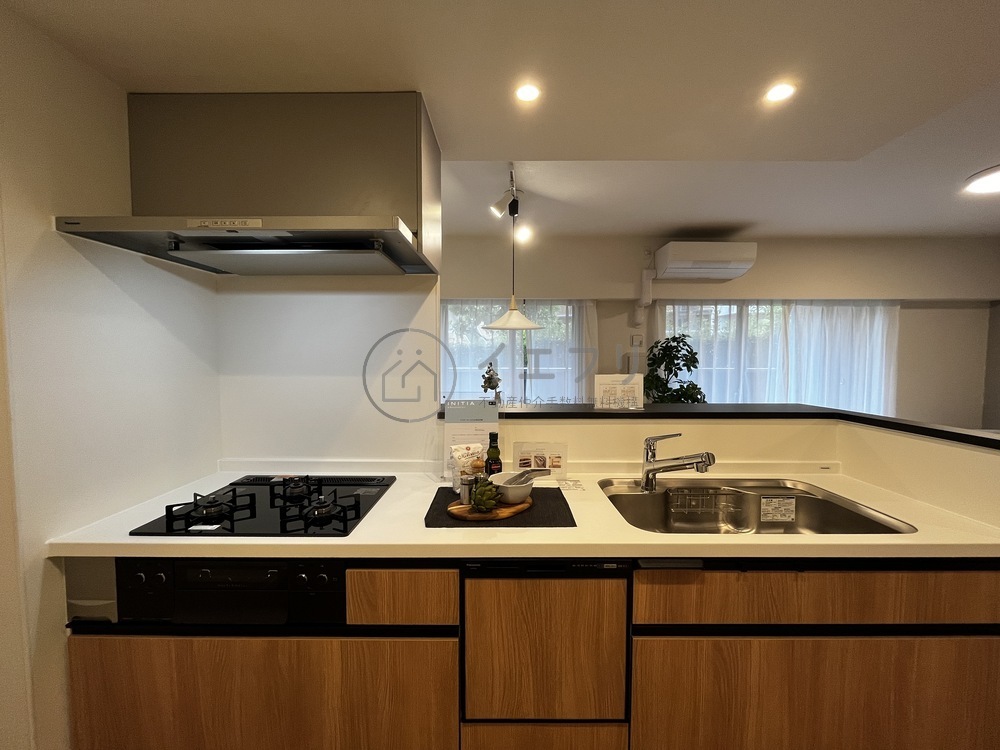 コンロ三口、システムキッチン、カウンターキッチン、食器洗い乾燥機、浄水器・活水器