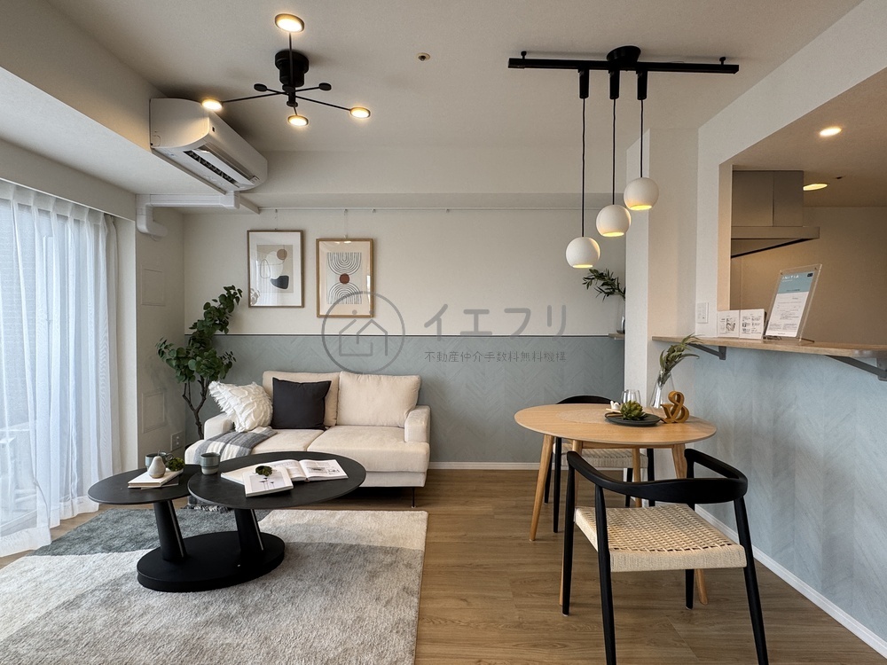 LDK約18.1畳・白基調の内装は清潔感と落ち着きを演出します