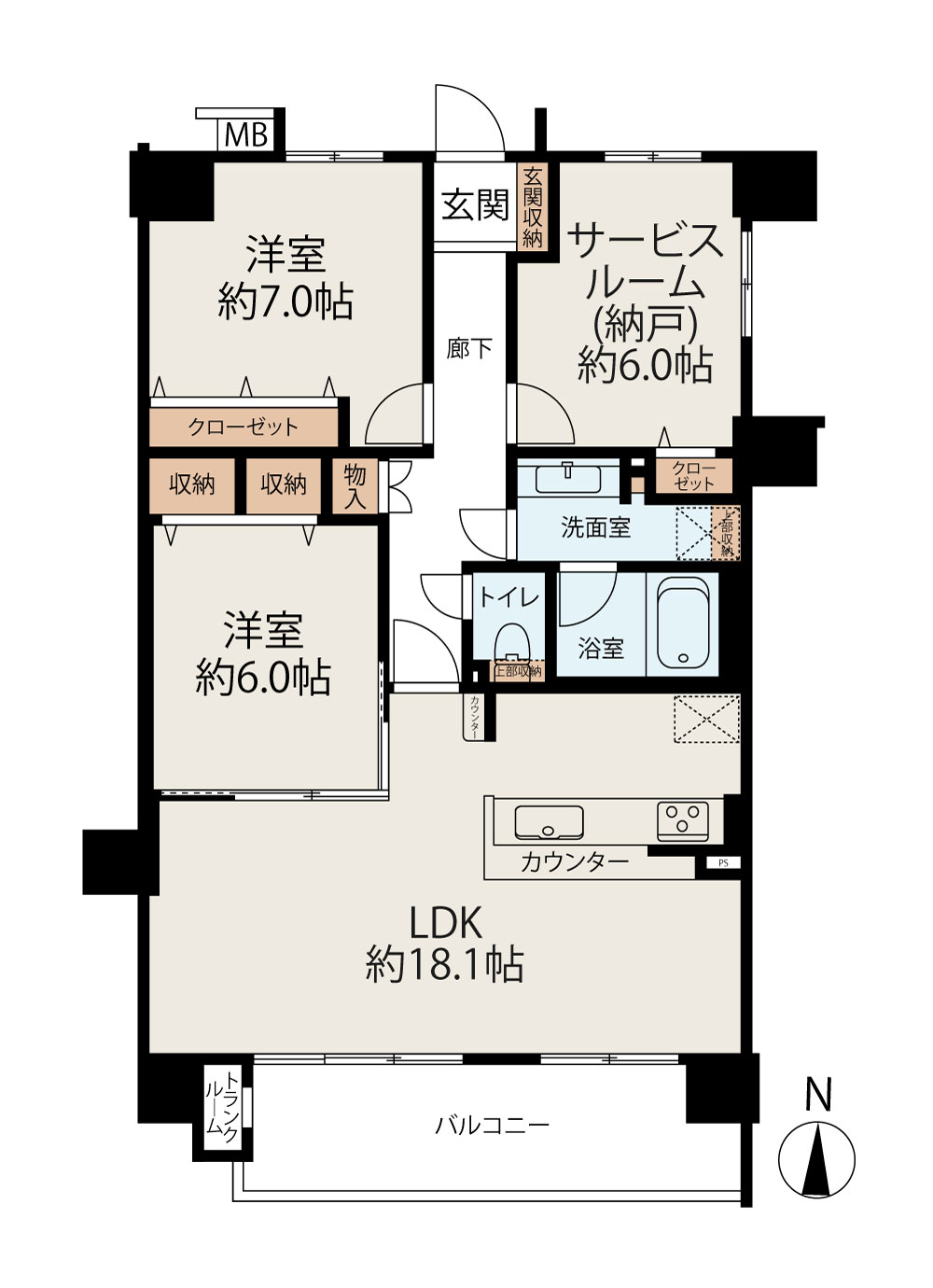 冷房、フローリング、バルコニー、バリアフリー、照明器具付き、ワイドバルコニー、南面バルコニー、断熱窓(複層ガラス、内窓等)、全室フローリング
