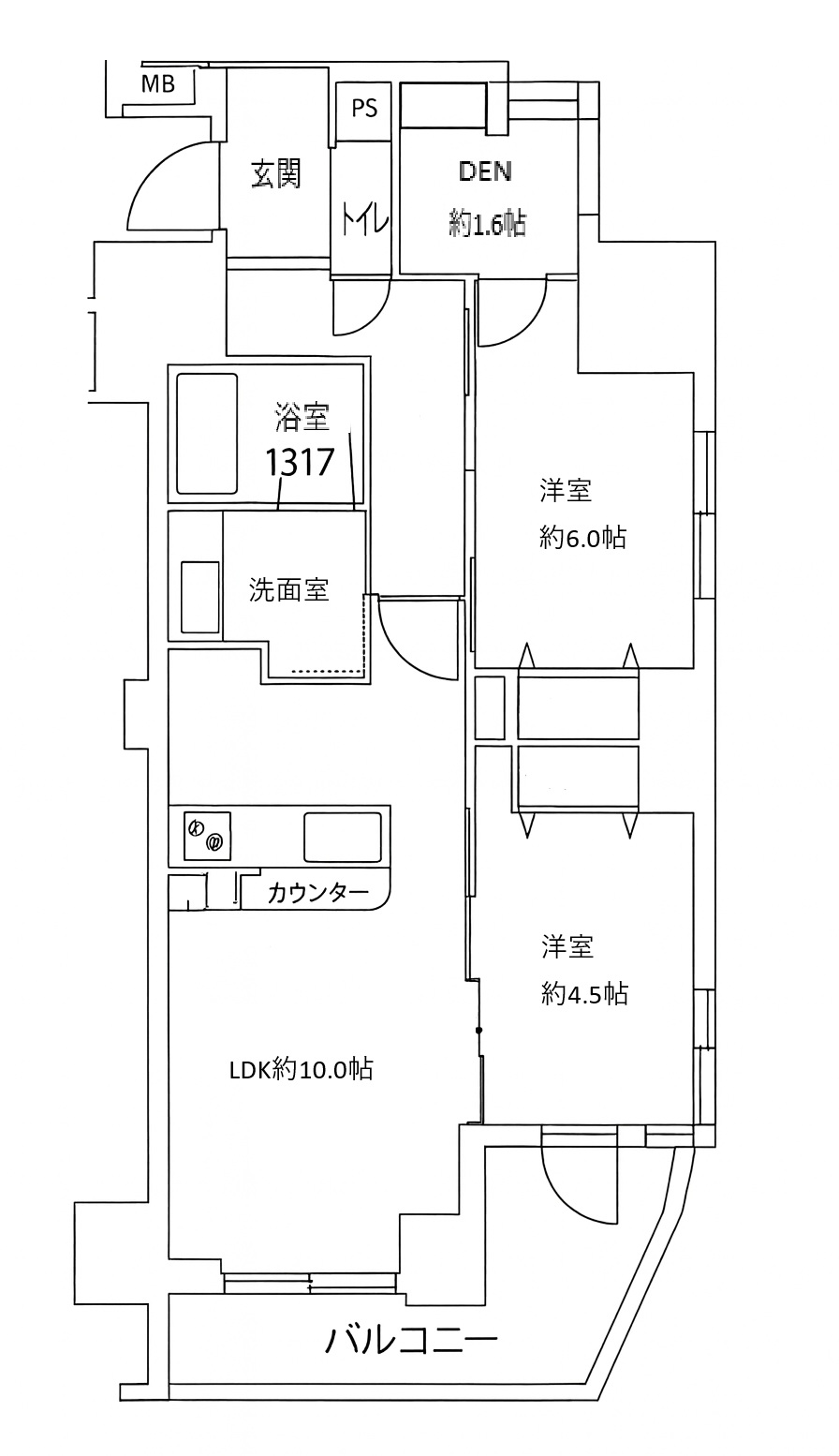 - 専有面積:54.83㎡(壁芯) ※専有面積にはトランクルーム・メーターボックスの面積が含まれます