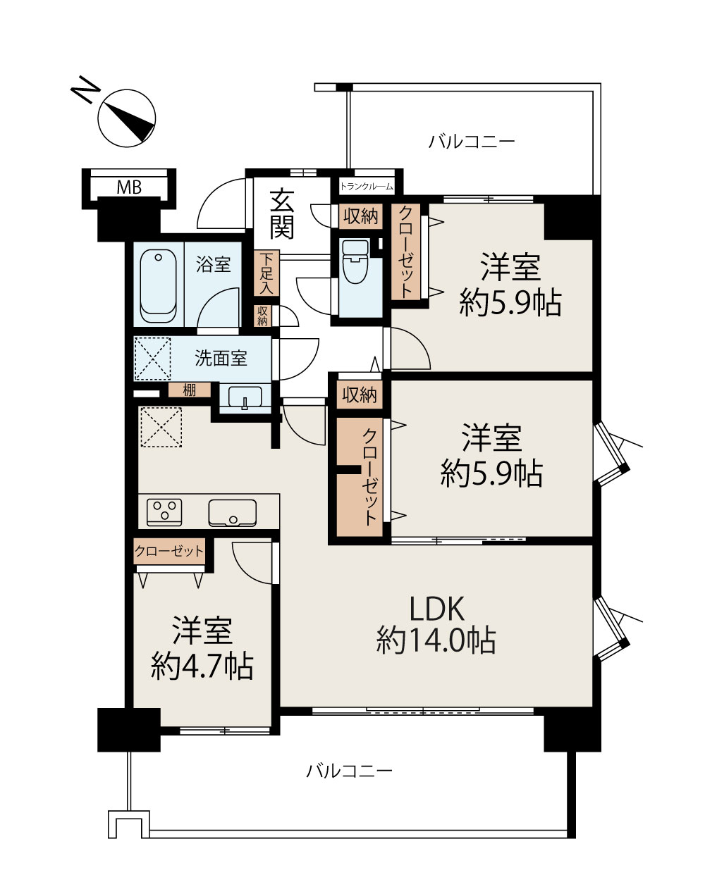 - ◆3方角部屋につき陽当たり・通風良好な3LDK
